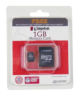 Kingston Technology has introduced a microSD Collegiate card in 1GB and 2GB capacities that offers college-themed content. Partnering with Movaya and 2Thumbz, the Kingston cards give students, faculty, alumni and fans across the US access to fight songs, school logo wallpapers and related content that can be used to personalize one's mobile phone.