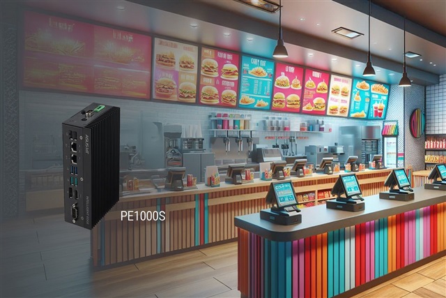 The ASUS IoT PE1000S industrial computer, tailored for the food and beverage sector, features a compact, fanless design. It is tiny and may be mounted directly behind a digital display, maximizing space while maintaining the store's aesthetic consistency. The fanless heat-dissipation design is an essential feature, effectively averting disruptions caused by dust accumulation or fan failure in traditional equipment. It ensures reliable operation even under harsh conditions, such as high temperatures and oil vapor.