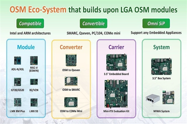 Through MiTwell's flexible Converter Board technology, OSM modules can seamlessly integrate with Qseven, SMARC, and COMe mini industrial standard carrier boards while supporting both x86 and ARM architectures. This unified design framework enables developers to transition and scale effortlessly, achieving efficient, compatible, and modular product development. Whether for rapid prototyping or final system deployment, MiTwell empowers customers to shorten design cycles, reduce integration complexity, and bring innovation to market faster.