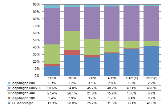 The share of 5G AP among Qualcomm's shipments to China-based vendors is expected to grow to 41.8% in second-quarter 2021.