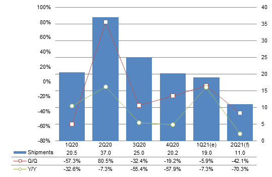 On the AP demand side, although consumer confidence in China is still to recover and the market will be in a low season, second-quarter 2021 smartphone AP shipments to China-based vendors (excluding Samsung processors made on OEM basis) are estimated to still grow 9.6% sequentially as smartphone brands continue to ramp up their component inventory levels.