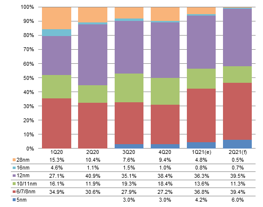 Chart 7: Shipment share by manufacturing process, 1Q20-2Q21