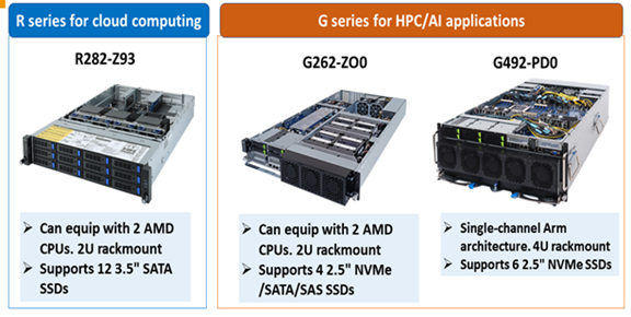 Among the server vendors, Gigabyte presented the most diverse range of servers featuring different CPU platforms based on Intel x86, AMD and Ampere Arm architectures.