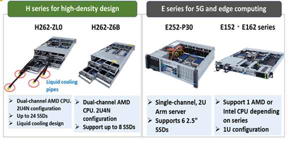 At Computex 2022, Gigabyte showcased a slew of edge and cloud servers including its R and G series for cloud and AI/HPC applications, H series featuring high density and E series for 5G and edge computing applications.